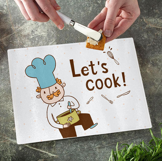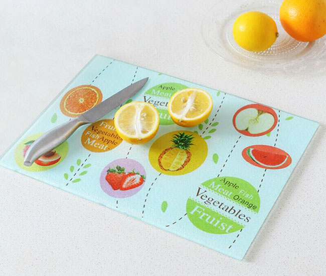 The tempered glass boards can be personalized with full-color images, designs, and logos, while producing vibrant image reproductions. This glass cutting board will spice up kitchen cutting.